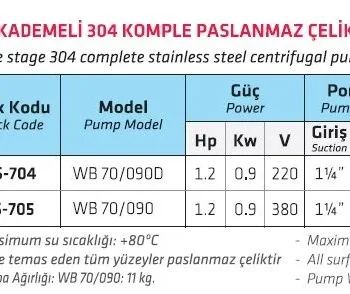 WATER SOUND WB 2-70/150D 2.HP 220V ÇİFT KADEMELİ 304 KOMPLE PASLANMAZ ÇELİK SANTRİFÜJ POMPA