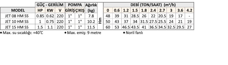 - 60 litre/dakika maksimum debi, 48 metre maksimum basınç kapasiteli, plastik fanlı, 0.85 HP monofaze jet pompa JET 08 HM SS City Pompa , Jet pompa ve tüm Su Pompası ürünleri konusunda teknik bilgi danışmak için firmamıza ulaşabilirsiniz.
