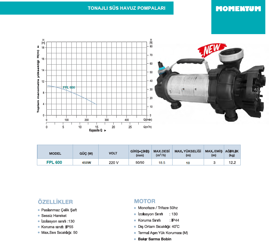 Momentum FPL 600 450w 220v Tonajlı Süs Havuz Pompaları