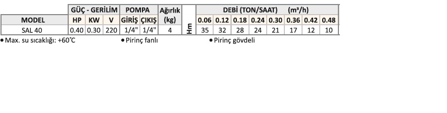 UMBRA SAL 40 Pompa Ürün Özellikleri: