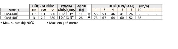 Varan CM4-60 Komple Paslanmaz Çok Kademeli Yatay Santrifüj Pompa 380 Volt Özellikleri