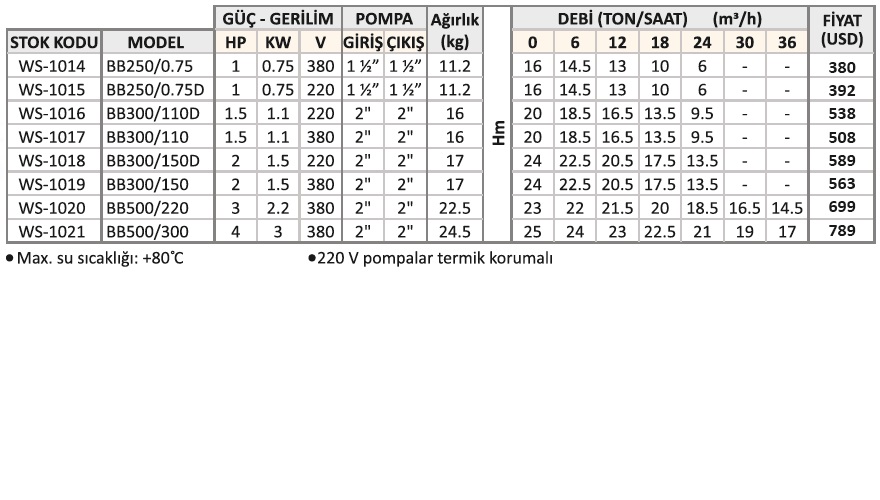 Orijinal fiyat: 34.372,90₺.18.926,85₺Şu andaki fiyat: 18.926,85₺.WATER SOUND WB70/090D, 1.2HP, 220V, TEK KADEMELİ, KOMPLE PASLANMAZ ÇELİK, SANTRİFÜJ POMPA