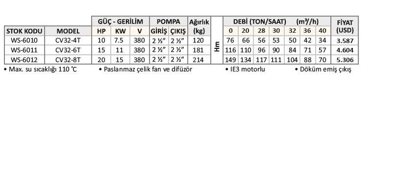 Water Sound CV32-4T 10HP Trifaze Paslanmaz Çelik Dik Milli In Line Pompa
