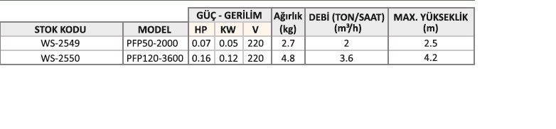 Water Sound PFP50-2000 Süs Havuzu Pompası – 50 Watt