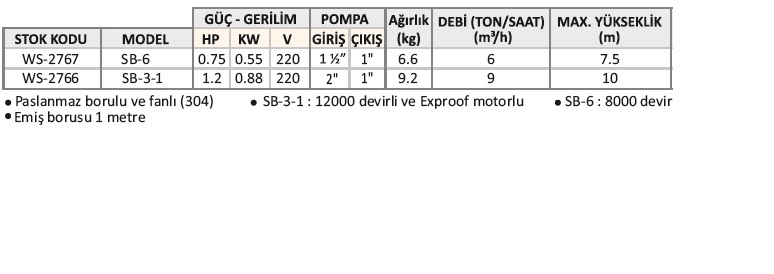 Water Sound SB-6 Elektrikli Varil Pompası Teknik Özellikleri