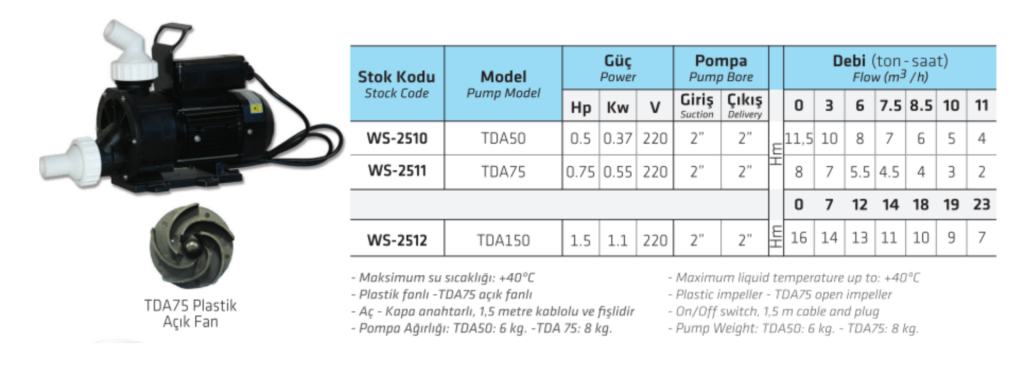 Water Sound TDA50 Plastik Gövdeli 0.5 Hp Tuzlu Su Transfer Pompası