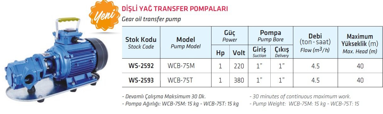 Water Sound WCB-75M Dişli Yağ Transfer Pompası